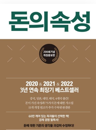 이 책은 2020 2021 2022 연속 최장기 베스트셀러에 선정되었고 60만 독자들이 선택한 경제경영 필독서라고 합니다. 김승호 회장이 어느 극장 하나를 빌려 대중에게 강의했던 내용을 기반으로 집필되었으며 돈이 가진 속성과 75가지 돈에 대한 가르침을 통해 직장인, 실업자, 사업가, 투자가 또는 아이에게 가난한 아빠가 아닌 부자아빠로 남고 싶은 부모에게 자신에게 맞는 꼭 필요한 조언을 찾을 수 있는 책입니다.