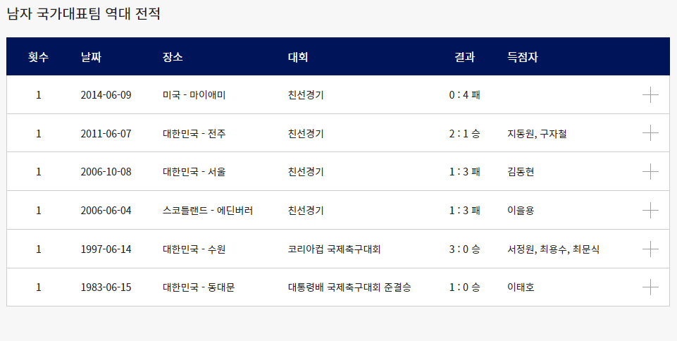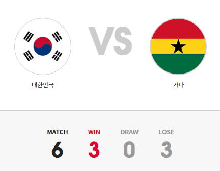 남자 성인 축구 국가대표팀 한국 vs 가나 역대 전적