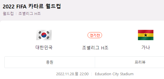 2022 카타르월드컵 한국 가나 경기 안내