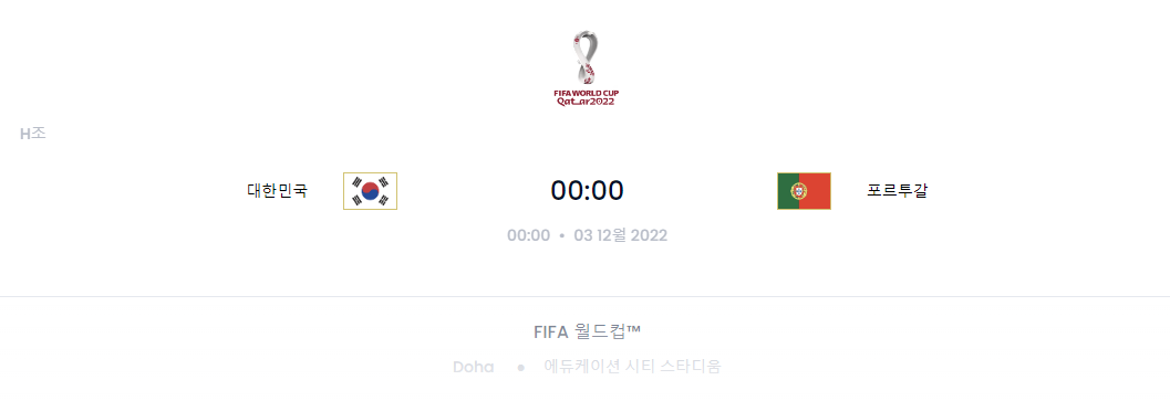 2022 카타르 월드컵 조별리그 H조 3차전 한국 vs 포르투갈 경기가 오는 12월 03일 토요일 00시(한국 시간)에 카타르 알라얀 에듀케이션 시티 스타디움에서 경기를 치릅니다. 금요일 저녁부터 온 국민의 응원 열기가 고조될 것으로 보입니다.