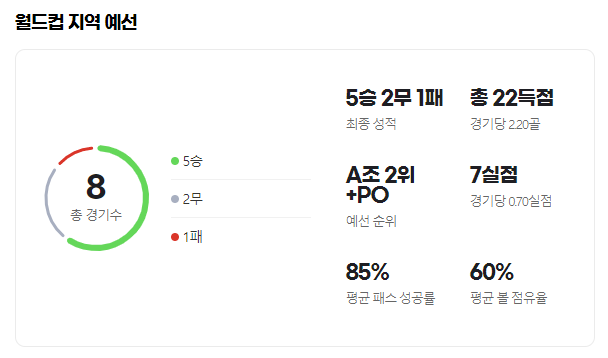 이번 카타르 월드컵 지역예선에서는 5승 2무 1패로 총 22 득점 7 실점하였습니다. 탈락 위기까지 갔었다가 간신히 플레이오프에서 살아남아 본선에 진출하였습니다. 예선전만 보면 조직력에 문제가 있어 보이나 지난 18일 FIFA 랭킹 31위 나이지리아와 친선경기에서 4:0 대승을 하여 우승후보의 실력을 보여주었습니다.