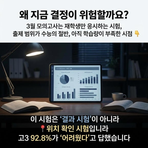 수능 당일에는 재수생, N수생이 대거 합류하며 성적 분포가 완전히 달라집니다. 즉, 3월에 나온 등급이 실제 수능에서의 위치를 그대로 반영하지 않습니다.